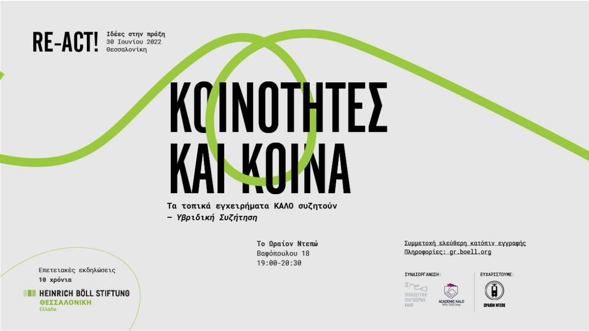 Ο δεύτερος σταθμός της διασυνδεδεμένης σειράς εκδηλώσεων ‘’Τα Τοπικά Εγχειρήματα ΚΑΛΟ Συζητούν’’ αποτελεί μια αναστοχαστική συζήτηση σχετικά με τις κοινότητες και τα κοινά. 📆 Πέμπτη 30 […]
