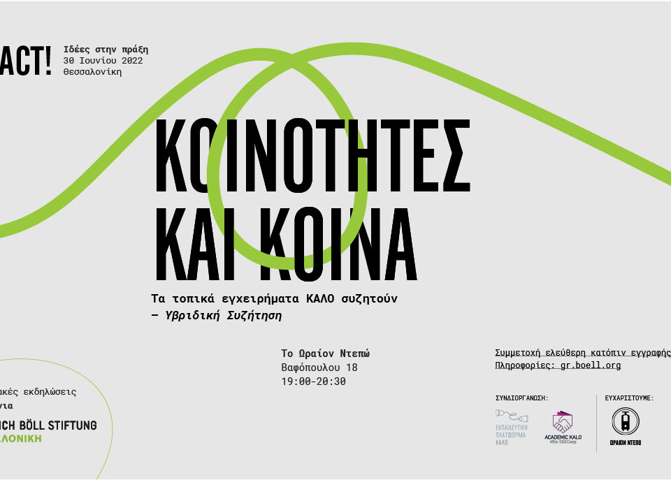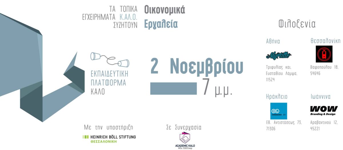 Η συζήτηση μεταξύ των εγχειρημάτων ΚΑΛΟ συνεχίζει! Επόμενη στάση της σειράς διασυνδεδεμένων εκδηλώσεων αποτελούν δύο οικονομικά εργαλεία για νέες και υφιστάμενες συνεργατικές και κοινωνικές επιχειρήσεις. 📆Τετάρτη […]